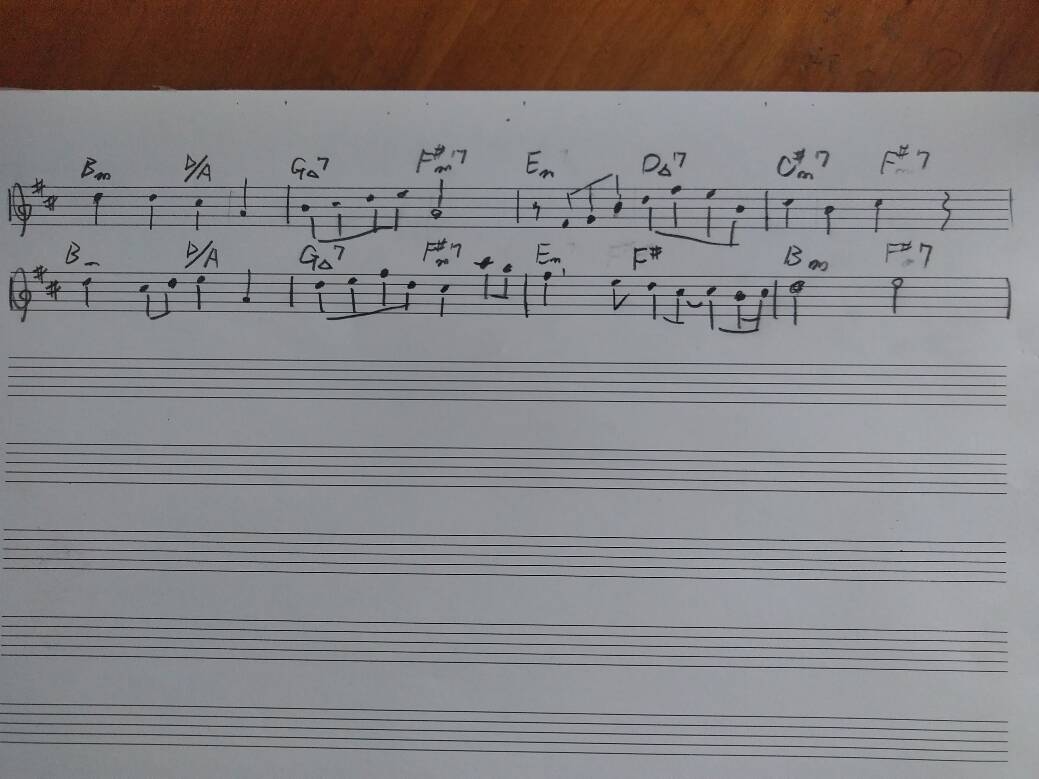 今週はMIDI環境が身近になく手書き譜面にてお願いします。