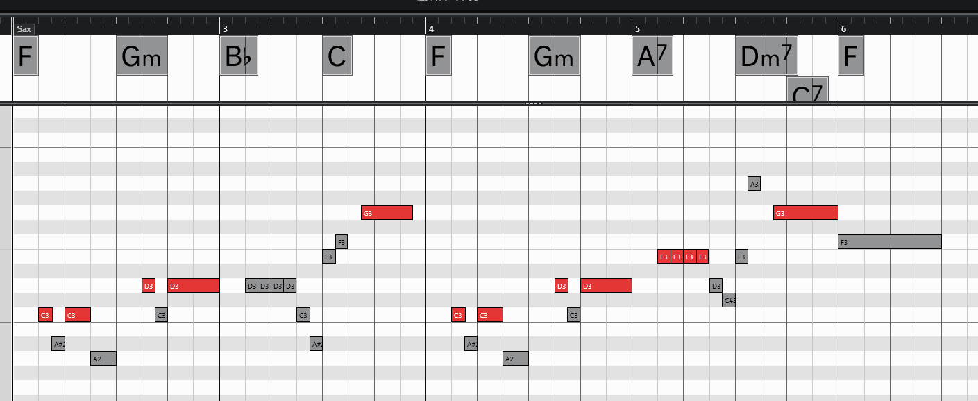 メロディに使う音がコードトーンの単調すぎるものが多かったので、練習を兼ねた作曲課題提出いたします。