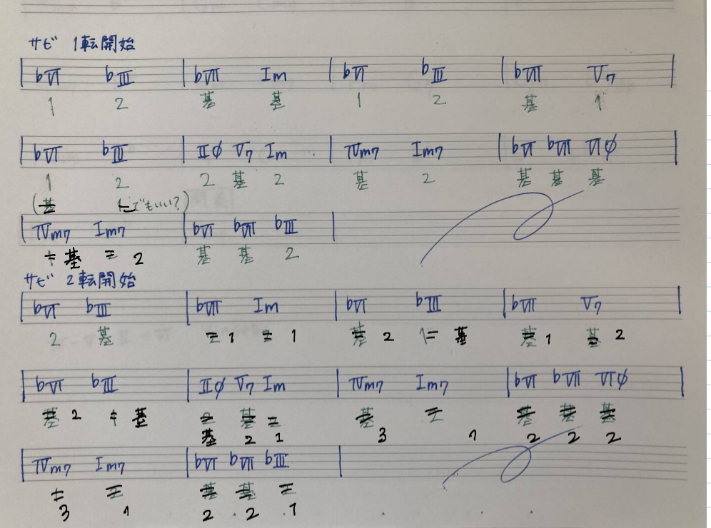 鍵盤練習の課題について、基本形以外を練習するように、とのことでしたので、展開指数を書きました。