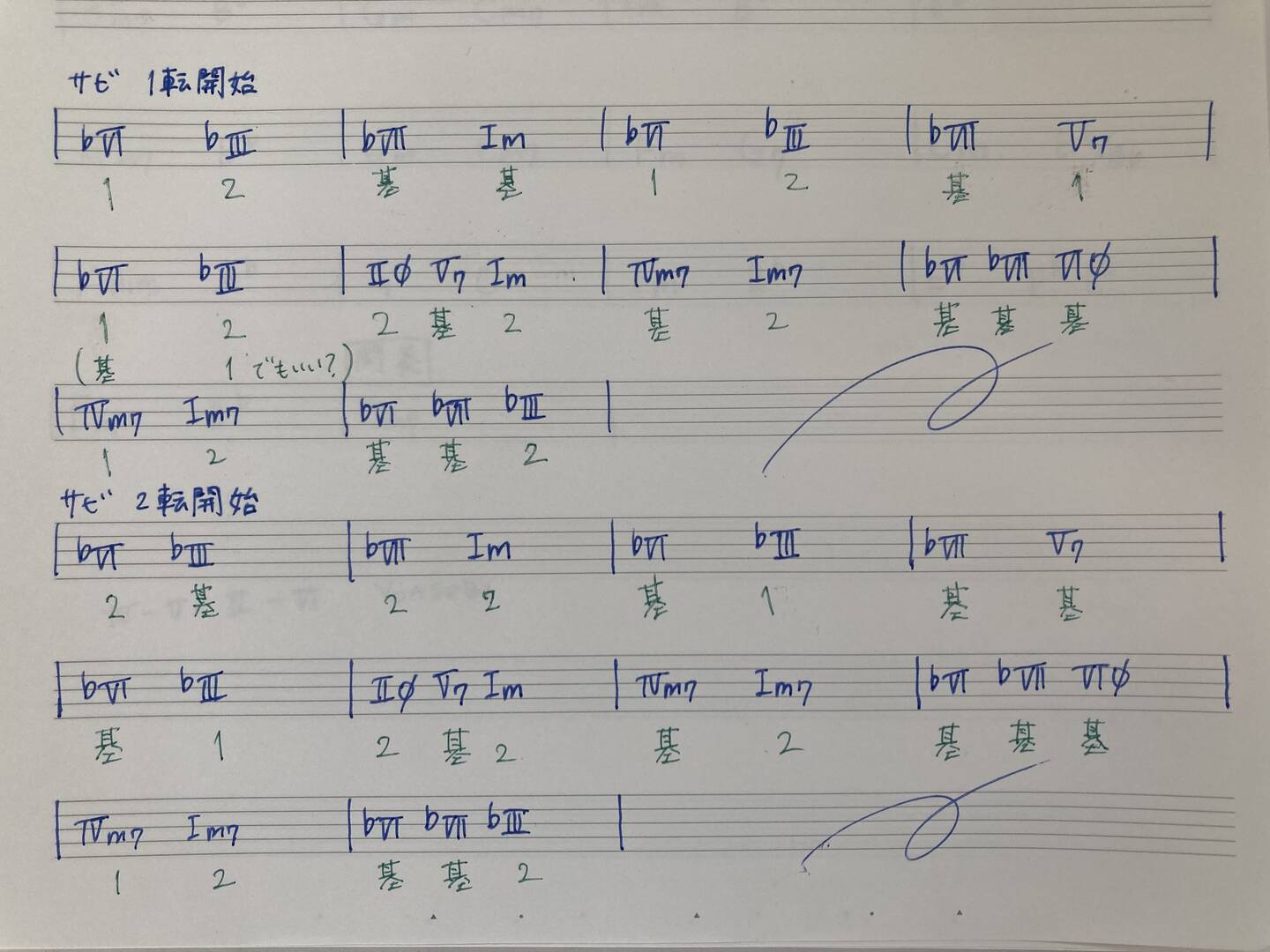 鍵盤練習の課題について、基本形以外を練習するように、とのことでしたので、展開指数を書きました。